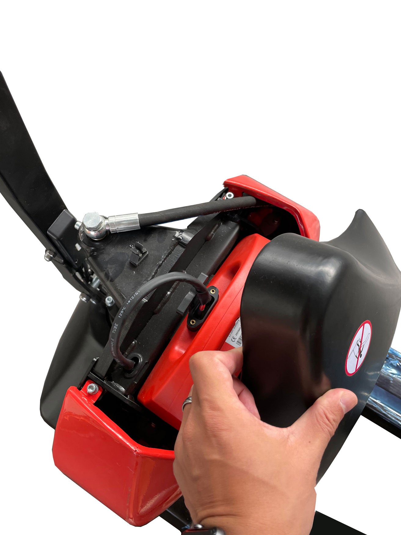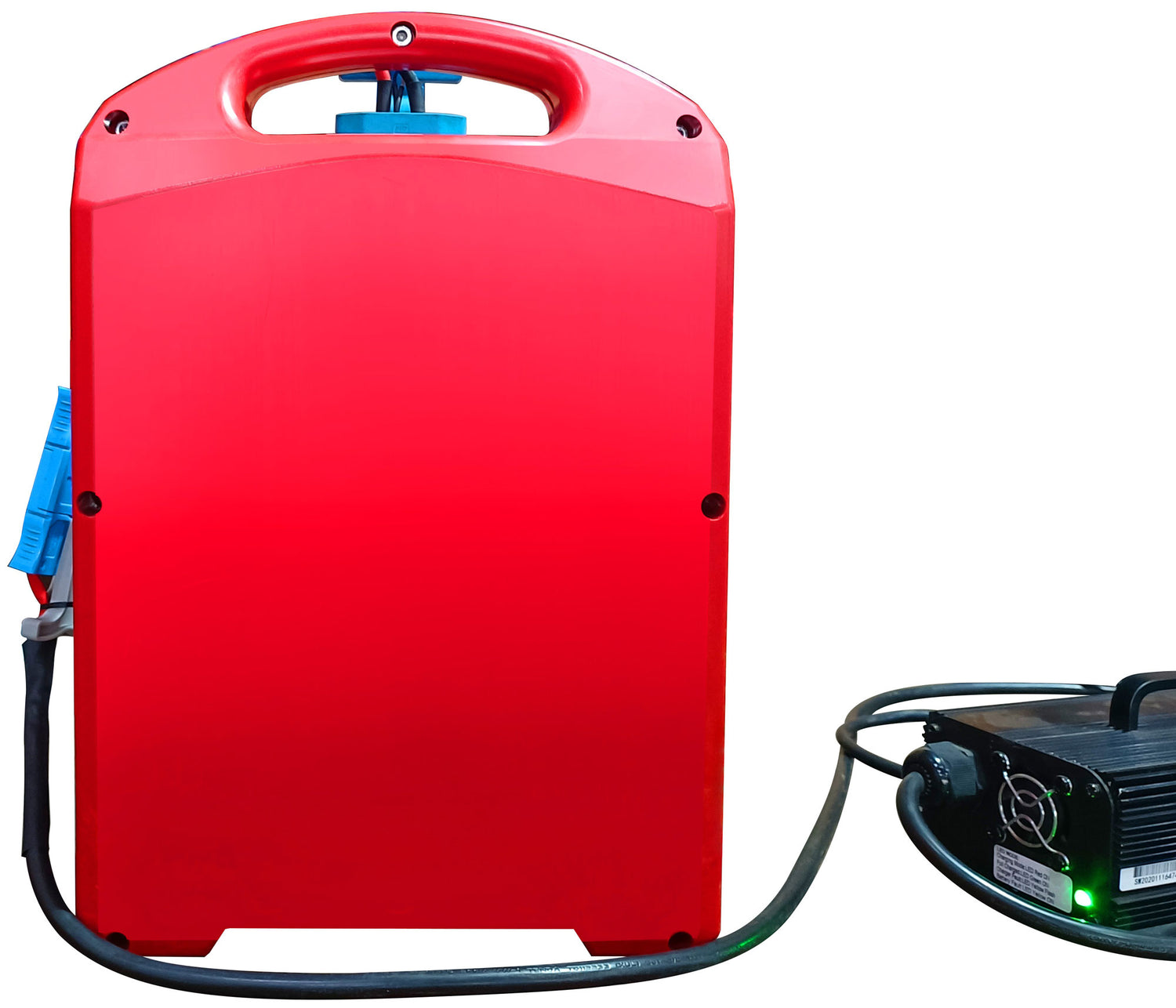 Die Lithium Ionen Batterie ist mit einem externen 24 V / 8 A Ladegerät (im Lieferumfang enthalten) an jeder 230 V Steckdose aufladbar.